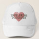 Um chapéu de caminhoneiro para verdadeiros amantes de podcasts criminais em todo lugar, com um coração de impressão digital vermelho com texto de estilo de máquina de escrever.