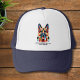 Celebre seu German shepherd com este ousado caminhoneiro pai de cão que apresenta uma ilustração poligonal vibrante no estilo geométrico. O design inclui duas linhas de texto editáveis: "Pai de German shepherd" e um nome personalizável abaixo. Perfeito para aniversários, Dia do Pai, ou veste do dia a dia, este boné personalizado é um presente divertido e na moda para qualquer dono de cachorro orgulhoso.