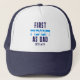 PRIMEIRO HANUKKAH COMO PAI-Trucker Hat com TEXTO PERSONALIZÁVEL. Hanukkah está escrito em hebraico. Você pode PERSONALIZAR o 'PAI AS' (por exemplo, substituído por MOM, talvez?) e PERSONALIZAR com seu nome e/ou ano de bebê. Um belo trocadilho de lembrança por um novo papai celebrando seu primeiro Hanukkah "paterno". Camisola de casaco e versão da mãe disponíveis.