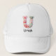 This initial 'U' is special because it features a charming, soft quilted patchwork design that evokes a sense of comfort and handmade artistry. The feminine palette of pinks, mint green, and white, combined with delicate appliqué flowers, hearts, and butterflies, makes it a perfect, cozy decoration. It is an ideal initial for nursery decor, baby shower gifts, or crafting projects.