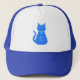 Este chapéu incrível apresenta uma imagem de arte digital de um gato azul giro com uma cauda encaracolada. Seus olhos são azuis pálidos com pupilas negras. Ele está vestindo um arco rosa em seu cabelo e um colar azul brilhante ao redor do pescoço com um token azul nele. A design é perfeita para celebrar um menino. Há texto personalizado no gato para que você possa revelar o gênero do bebê ou incluir uma mensagem própria.