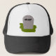 Este chapéu legal apresenta uma tombstone de cinza com RIP ao pingar texto preto nele, em pé sobre um pedaço de grama verde. O design é mostrado aqui com um chapéu preto e branco, mas outras combinações de cores também estão disponíveis.