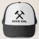 A fun trucker hat for a lady geologist! The phrase under the crossed rock hammer logo says "Rock Girl," but can be easily edited with your own custom phrase or font style! Multiple hat styles available!