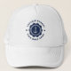 Roda e âncora náutica branca e azul-marinho elegantes, com tipografia azul-marinho personalizável.