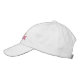 Toca de beisebol com nome em vermelho e descrição "A Noiva" em rosa bordada