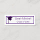 Estes cartões de inserção de graduação apresentam um boné roxo, chapéu, com tassel roxo e classe de ano, na frente. Há um retângulo roxo ao redor da informação na frente, para uma aparência profissional. A parte traseira apresenta o nome do formando e uma caixa de texto modelo para as informações de contato do formando, para fornecer aos amigos e ou a potenciais empregadores. Obrigado por comprar CherylsArt no Zazzle.