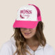 Quem é o chefe? Designs de texto bonitos e coloridos que diz do "a senhora chefe". Uma ilustração de uns calçados cor-de-rosa do salto de estilete adiciona um ponto de exclamação da forma!
