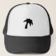 Uma simples silhueta de uma palmeira inclinada para um lado.