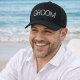 Black baseball cap with bold white "GROOM" text, perfect for weddings, bridal showers, or honeymoon. A stylish and fun wedding accessory for the groom.