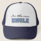 Eu sou o Tio Novo T-shirts, capuzes, cartões, botões de anúncio para bebês, ímãs, chaveiros e outros orgulhosos itens de tio novo com texto preto e azul.
