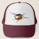 Este chapéu apresenta um retrato estilizado de um aranha-d-água e sua sombra. Ele é um inseto minúsculo (também conhecido como patinador de lagoas) que pode atravessar a superfície da água e vive em lagoas e riachos lentos no verão.