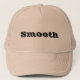 Um chapéu de caminhoneiro de cor khaki que diz 'Smooth' na frente. Você também pode design suas próprias fotografias, obras de arte, palavras e gráficos para criar um único chapéu de caminhoneiro americano! Há uma variedade de cores diferentes disponíveis para você escolher.