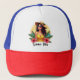 Top off your summer style with this tropical fashion girl hat 🧢🍍! Featuring a curly-haired woman in a straw fruit hat, oversized sunglasses, and yellow dress with hibiscus and palm accents, plus “Summer Vibes” in elegant script. A stylish and sunny accessory for any summer adventure 🌞🌺