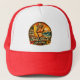 Turn heads with this Island style graphic print surfer hat. The retro inspired design captures vintage California surf shack energy with a blonde pin-up surfer clutching her surfboard, waves crashing onto the beach, with an antique van in the background. The ride the wave motto, paired with tropical hibiscus flowers complete the salty coastal sunset scene. | Available on multiple hat styles. Choose a trucker, dad, snapback, or bucket hat from the Product Style menu.