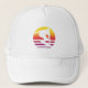design de surf legal com Surfer com fundo de pôr do sol no estilo retrô.