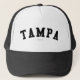 Verifique para fora este chapéu de Tampa! É você de Tampa, Florida? Você tem um amigo ou um membro da família que amem Tampa, Florida? Em caso afirmativo, este chapéu da "bandeira" é exatamente o presente que você está procurando! As características de design "Tampa" na rotulação preta arqueada na pia batismal clássica da faculdade.