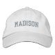 Texto de nome personalizado atlético texto branco-claro-azul bordado Boné Baseball. Disponível em muitas cores.