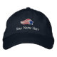 Estrela Voadora e Logotipo Bordado Hat em azul-design azul e branco patriótico no marinho azul e em outros chapéus coloridos.