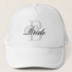 Toca de caminhão com monograma da noiva para festa de casamento. Ideia engraçada de presente de lua de mel para mulher prestes a se casar. Design personalizado com monograma e tipografia de roteiro elegante. Toca preta e branca com logotipo elegante. Acessórios de casamento para festa de casamento, chá de noiva, despedida de solteira, fim de semana de garotas, lua de mel, etc.