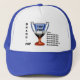 Vovô é um Pai também! Então dê a ele um presente personalizado de Dia de os pais que ele pode apreciar o ano inteiro! O Boné deste Caminhoneiro legal apresenta um belo troféu grego clássico, branco e cromo azul, gravado: "TOP POP". Ao lado dele está um campo de texto personalizado para os nomes dos netos.