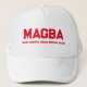 Simplesmente uma declaração humorística, talvez satírica: "MAGBA - Torne a América Excelente a Grã-Bretanha de novo" no boné de bola dos caminhoneiros.