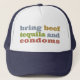 Como dos email infames de Sarah Palin: "Traga a carne, o Tequila e os preservativos". É apenas um divertimento e uma referência do bobo mas não muito mais é significado por ele.
