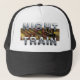 Cena e slogan do trem de noite com uma imagem do arquivo de uma jarda do trem na noite. Os t-shirt, os posters, as canecas, e outros artigos para o trem ventilam, lustre da história, e fã referente à cultura norte-americana.