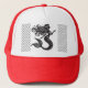 Red Trucker Hat com logotipo e escalas preto e branco