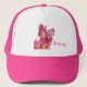 Add a pop of color and personality to your outfit with this vibrant pink and white trucker hat featuring a playful cartoon design. Perfect for anyone who wants to add a fun and whimsical touch to their look. The adjustable snapback closure ensures a comfortable fit for all head sizes. Make a statement with this unique and eye-catching hat - order now and get ready to turn heads!"