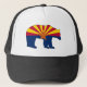 O Arizona tem tudo: deserto, florestas, montanhas, lagos. Há escalada, esqui, caminhadas, remo e terreno infinito para realizar todas as suas atividades ao ar livre! Este design legal é a bandeira do estado do Arizona dentro de um urso.