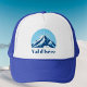 Este chapéu com logotipo de Val d'Isère, France Savoie apresenta uma montanha azul maravilhosa com fundo ensolarado. É o presente perfeito para turistas em férias de esqui!