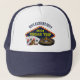 Personalize seus próprios chapéus de viagem de festa de despedida de solteiro para uma viagem a Las Vegas. Um chapéu legal com elementos essenciais de cassino, como um baralho de cartas, fichas de pôquer e roleta com 'Viagem para Vegas' em letra cursiva amarela. Presentes divertidos para jogadores para todo o seu grupo.