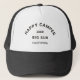 Feliz Camper, crista de acampamento, chapéu de caminhoneiro preto personalizado. Personalize com o ano de sua viagem e localização. Perfeito para amigos ou família aventureiros quando embarcam em sua viagem de campers felizes ou no fim de semana de acampamento de reunião. Encomendar chapéus para toda a tripulação do acampamento. Projetado para combinar com nossa feliz coleção de preto vermelho e vírgula.