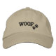 Mostre o amante do cão em você! Esse boné de 100% de algodão, de qualidade, tem a palavra WOOF bordado na frente em fio preto, junto com duas pequenas pegadas, também bordadas em preto.