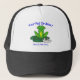 Attract and connect with fellow frog lovers with this fun and flirty cap. Let our black with blue writing, trucker hat do the talking!