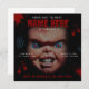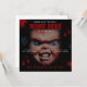 Boneca Chucky Azul Vermelho Convite Sangrento. Faça uma declaração com este convite de festa de aniversário personalizado e temático. Você pode facilmente enviá-lo por texto ou imprimir e enviar por correio para seus convidados.