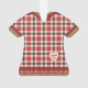 Vestido de xadrez, aparado com botões de flocos de neve e rendas, mostra o monograma e o nome do seu ente querido. Na parte de trás está uma pequena "tatuagem" cardíaca, cor-de-rosa pincelado, com a menção "Natal 20xx". Adicione seu próprio nome e data seguindo o link "Personalizar este modelo".