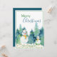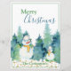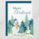 Adoráveis bonecos de neve com fundo de árvore em aquarela. Saudação de “Feliz Natal” para sua família e amigos.