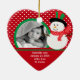Os enfeites de natal bonitos da foto que caracterizam um grupo adorável do boneco de neve polca vermelha em um fundo pontilhado, apenas adicionam SUA FOTO! Aperfeiçoe para o primeiro Natal & o segundo Natal. Um presente do Natal da maravilha sure a ser estimado por muitos próximos anos.