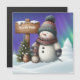 Boneco de neve fofo no Polo Norte com luzes do nor
