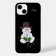 Esta capa para iPhone 14 do Boneco de Neve Sentado apresenta uma impressão da minha pintura acrílica de um boneco de neve. Personalize-a com o seu nome ou texto. É uma ótima ideia de presente nesta temporada de Natal.