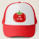 Chapéu vermelho feito sob encomenda do camionista do tomate. Bonés engraçados com as citações ou dizer personalizable. Nenhuma matéria se chamou uma fruta ou um vegetal, é comida saudável. Ícone bonito da salada para o vegan, os vegetarianos, a política, o partido e o outro. Design do divertimento para o cozinheiro do cozinheiro chefe na cozinha ou no restaurante. Acessórios na moda do headwear e do traje.
