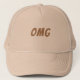 Apresentamos nosso boné trucker elegante de cor "Bege e Bege" com o texto "OMG".
