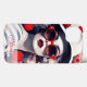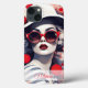 Linda mulher parisiense com um chapéu branco e óculos de sol vermelhos com abstrato moderno. A elegante decoração de capas de telefone de arte de moda feminina.
