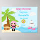 Uma Bela Garota Pirata de Brunette em poster de celebração de aniversário rosa para aquela ocasião especial. Faça seu filho se sentir especial com sua própria poster para pendurar na parede. O texto pode ser alterado para seus próprios detalhes. Trabalho de arte por Clipartopia (112)