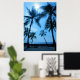 Uma imagem impressionante de belas palmeiras havaianas balançando em frente aos céus tropicais azuis e ao oceano.