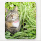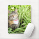 Um lindo gato do Calico se senta num jardim exuberante, olhando para o céu, impresso em um Mousepad.