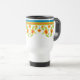 Uma bonito Caneca de viagem não derramar, com uma borda decorativa de flores do Pote Marigold. Parte da coleção Posh & Painterly 'Marigold Medley'