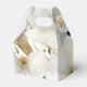 Uma bela caixa de favoritos de casamento com um adorável fundo de ilustração floral com cor d'água com texto em ouro com dentro de camada branca macia e borda branca fina.
