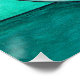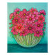 Uma pintura floral estilizada e vibrante do cosmos em muitos tons de rosa num vaso de vidro num Impressão de fundo turquesa da artista popular Lisa Lorenz